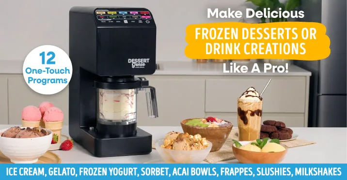 Dessert Genie has 12 one-touch programs so you can easily make delicious frozen desserts or chilled drink creations at the touch of a button.