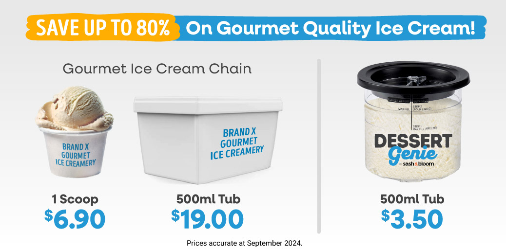 - SAVE up to 80% on Gourmet Quality Ice Cream – Make a 500ml tub for as little as $3.50