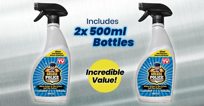 Grease Police includes 2 x Grease Police 500mL bottles.