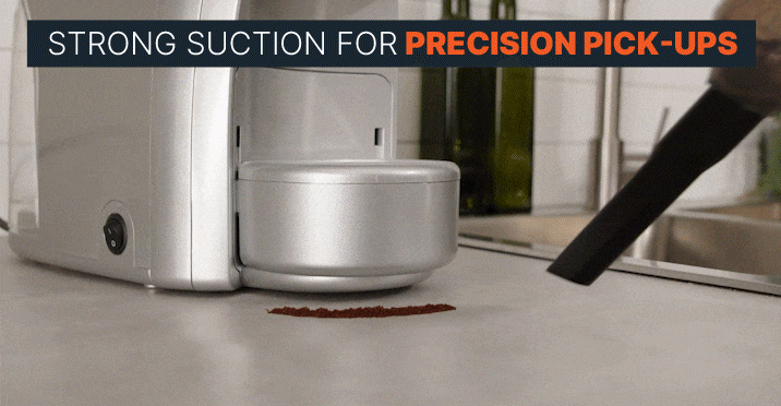 - Strong filtered suction effortlessly picks up dirt, coffee, pet hair & more