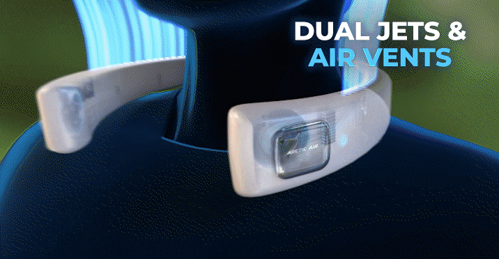 - Personal, wearable air cooler that helps you stay cool and comfortable anywhere