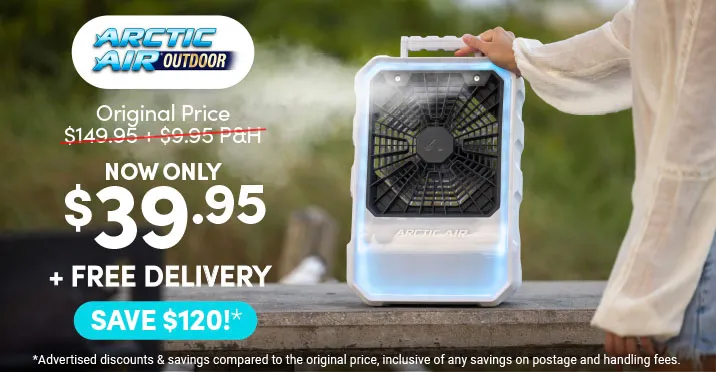 We’re so confident that ARCTIC AIR Outdoor is the cooling comfort you need for outdoor spaces, that we’re giving you a 90 day money back guarantee. Try it at home and if you’re not completely satisfied just send it all back within 90 days for a full refund of the product price, less original P&H. Return postage at customer’s expense. Statutory rights still apply.