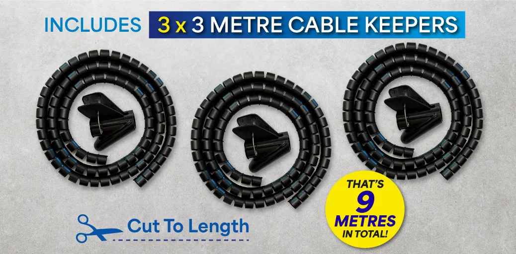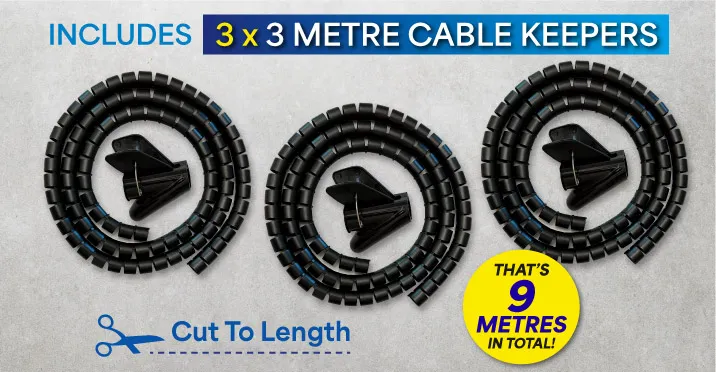 You’ll get 3 packs of Cable Keeper and each Cable Keeper is 3 metres long. That’s 9 meters in total! Each Cable Keeper also comes with the Easy Zip Tool to zip up cords & cables instantly.