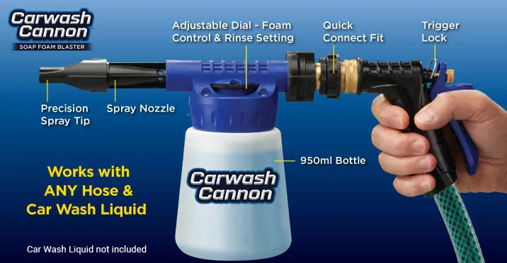 - Simply attach it to your hose, add car wash liquid & water to the bottle and pull the trigger to spray your car with thick, cleansing foam. Then rinse the foam away