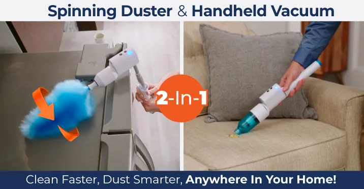 - 2-in-1 cleaning tool that combines a flexible duster & powerful vacuum in one
