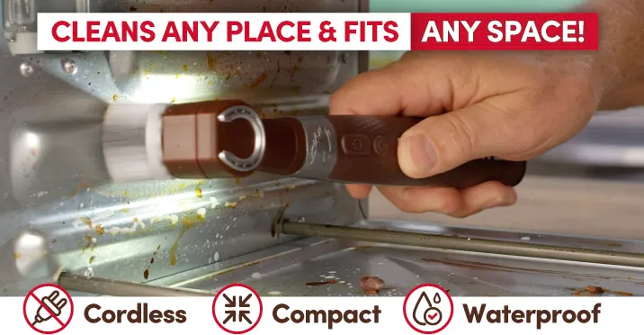 Horsepower Pocket Pony has the scrubbing power to clean almost anything. Its compact size makes it perfect for cleaning tight and difficult to reach spaces. Combined with its waterproof construction, it is well-suited for cleaning in wet areas such as the kitchen or bathroom.