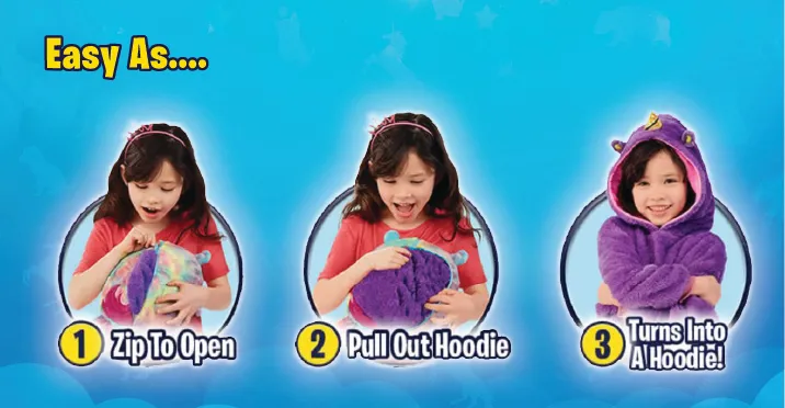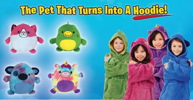 - Huggle Pets transform from a cuddly pet to a warm & cozy hoodie in seconds!