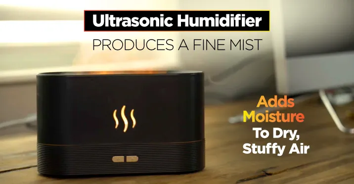 - 3-in-1 Humidifier, Diffuser & LED Flame Light!
