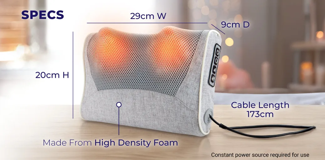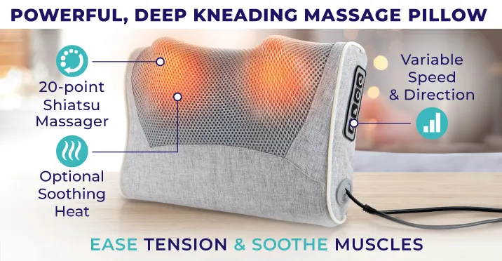 - Powerful, deep kneading massage pillow - helps ease tension and soothe tired muscles