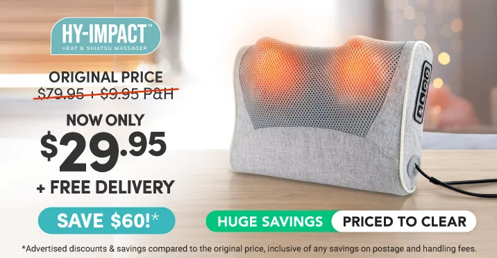 Hy-Impact Heat and Shiatsu Massager has 3 speed settings, 2 motion directions and an optional heat setting to choose from. This can be controlled via the easy to use soft-touch control panel.