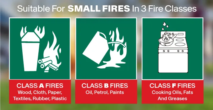 HydroGuard® is only suitable for extinguishing small fires in the following fire classes: