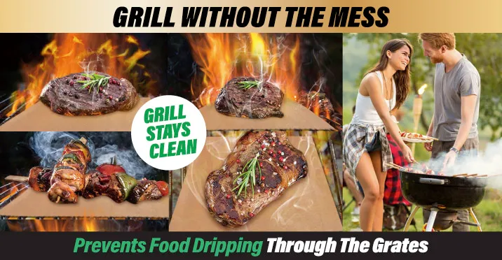 Perfect Grill Copper Mats are non-stick mats designed for grilling and baking. They lock in flavour, keep food from falling through the grates, and make cleanup easy.