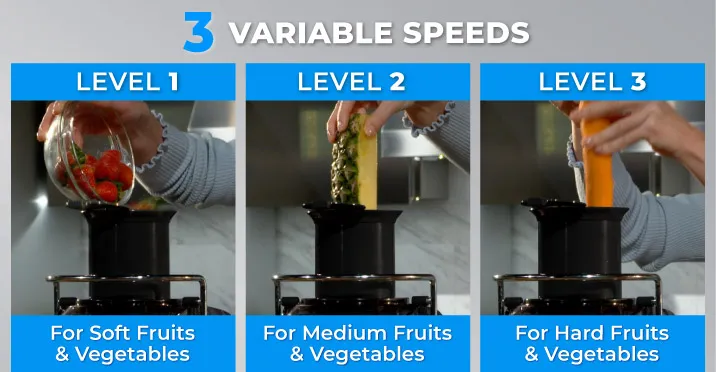 - Level 3 - for hard fruits and vegetables like carrots