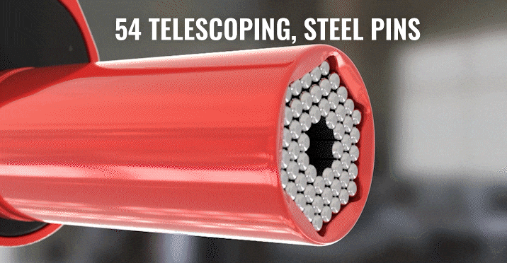 - 54 telescoping, solid steel pins retract and conform to fit most nuts, bolts and screws