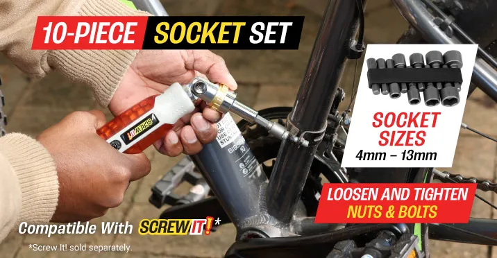 The Screw It! Socket Set includes 10 socket sizes: