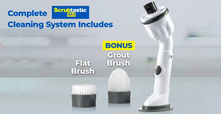 Scrubtastic® Max includes 1 x Scrubtastic® Max, 1 x charging adapter, 1 x flat brush and 1 x BONUS grout brush.