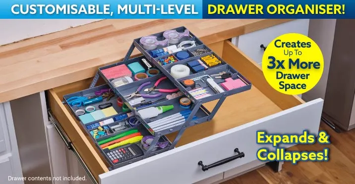 - Clever, multi-level drawer organiser that stores up to 3 times the drawer space