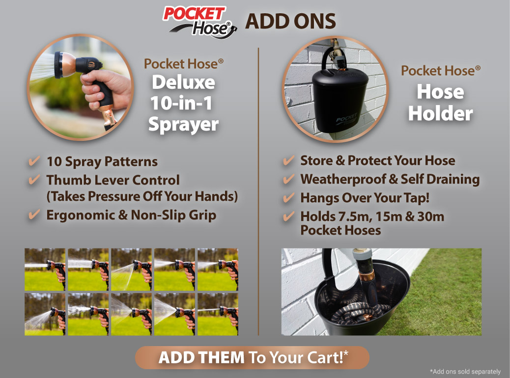 - Pocket Hose Copper Bullet Add On Accessories are also available**