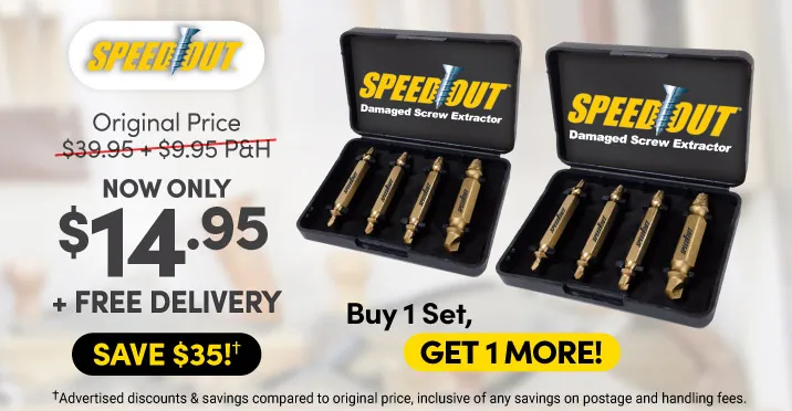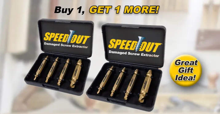 Speed Out™ includes a 4 piece set with 4 different sizes of Speed Out™ extractors for every situation in a durable storage case. And, as a bonus you'll receive an automatic upgrade to the deluxe Speed Out™ Titanium with a durable titanium coating for heavy-duty performance. Plus, with our Buy 1, Get 1 More offer, you will receive a second 4 piece deluxe Speed Out™ Titanium set.