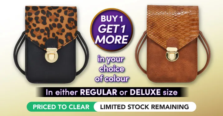 The Touch Screen Purse is available in a regular or deluxe size. The deluxe size has 50% more space to carry all your essentials.