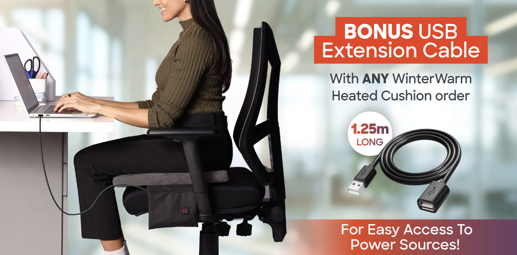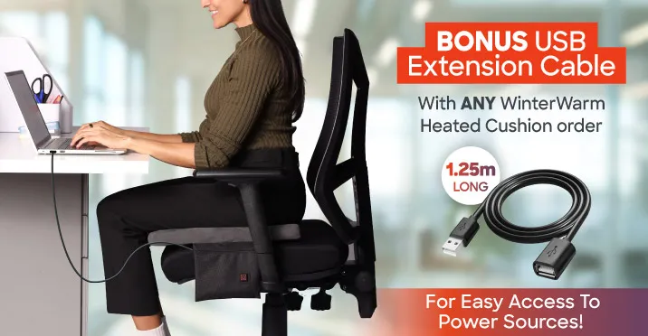 You can heat your WinterWarm Heated Cushion by plugging it into compatible devices* with a USB-A port, such as a power bank, laptop, car, or charger. A BONUS 1.25m USB extension cable is included for extra convenience.