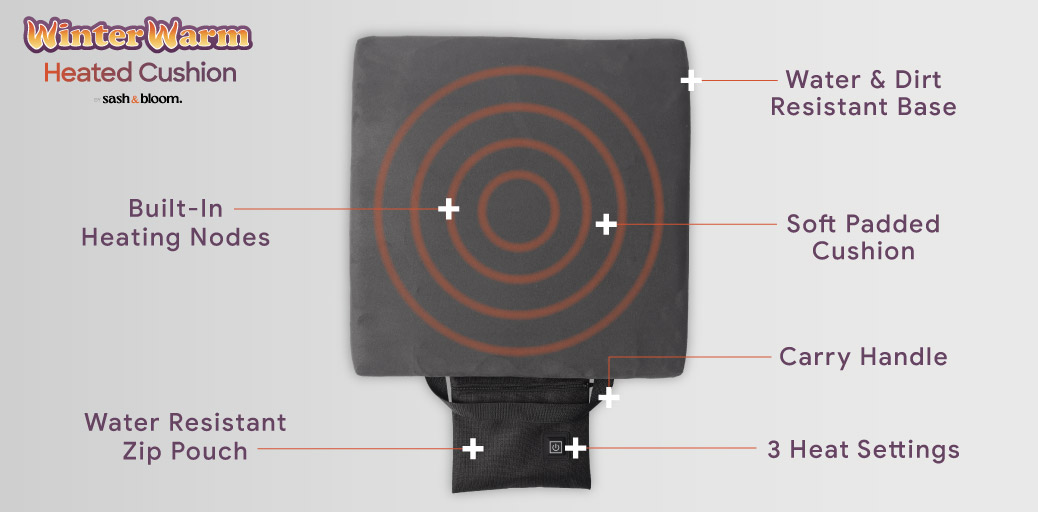 WinterWarm Heated Cushion by Sash & Bloom Heated Cushion For Warmth & Comfort On Any Seat!