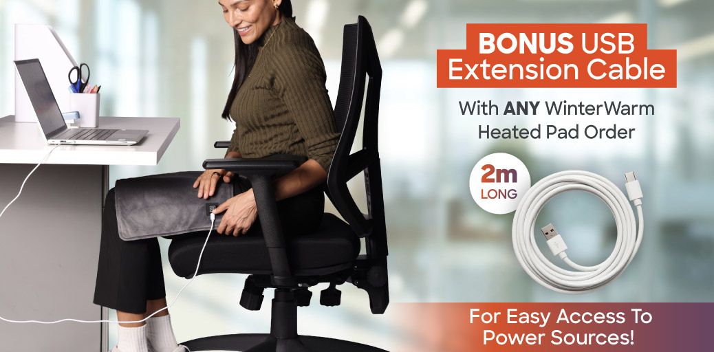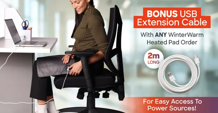 You can power the WinterWarm Heated Pad by plugging it into compatible devices* with a USB-A port, such as a power bank, laptop, or wall charger. A bonus 2m USB extension cable is included for extra convenience.