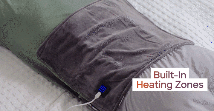 The WinterWarm Heated Pad has heating zones built into the Pad that warm up quickly when powered via a USB connection. It has 3 heat settings (Low, Medium, High) that can be changed by pressing the button on the pad.