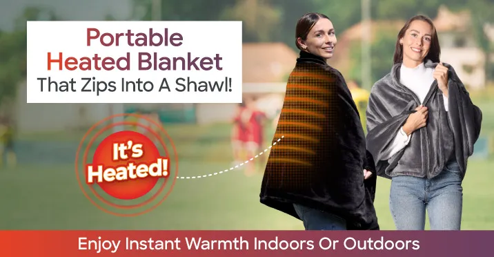 WinterWarm Heated Shawl By Sash & Bloom Heated Blanket That Zips Into A Snug, Wearable Shawl!