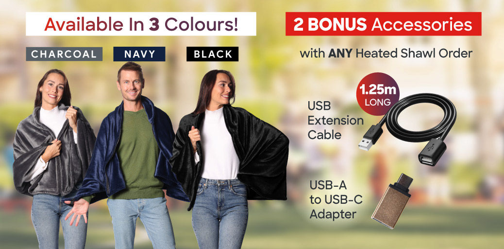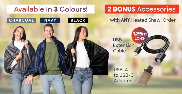- 1 x WinterWarm Heated Shawl in your choice of colour