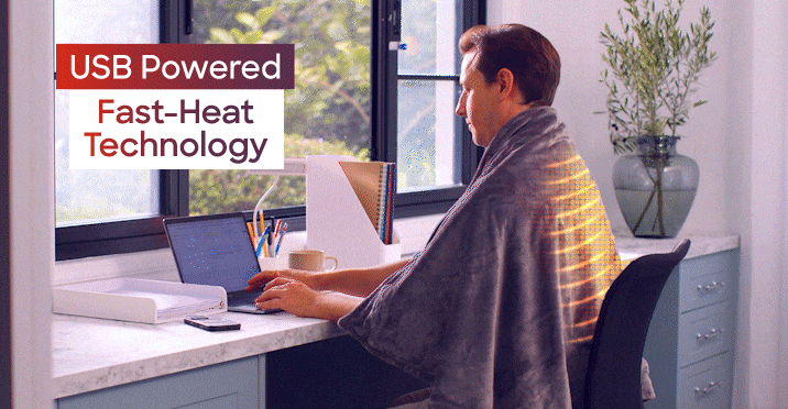 - USB Powered fast-heat technology warms you quickly at the press of a button